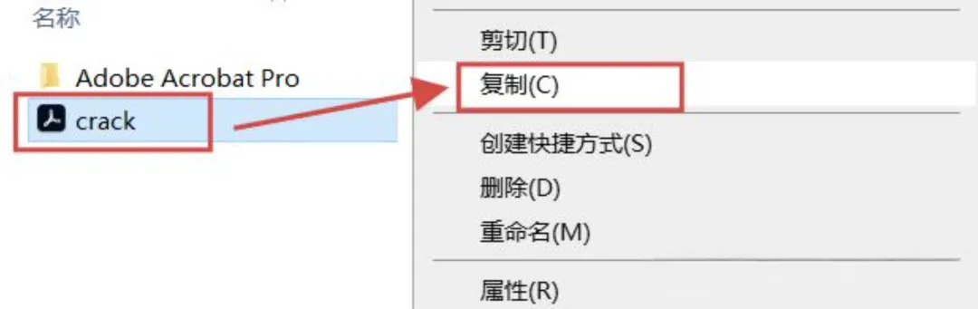 1、复制激活文件: 返回解压文件夹,找到并复制文件:crack。
