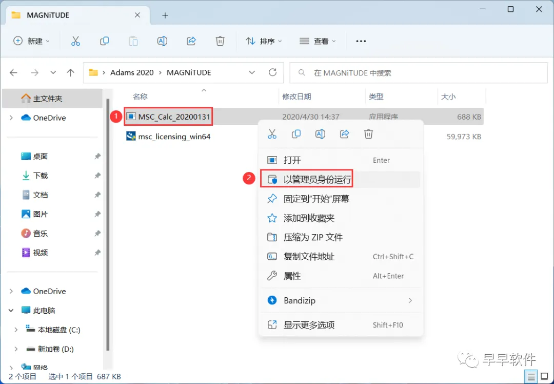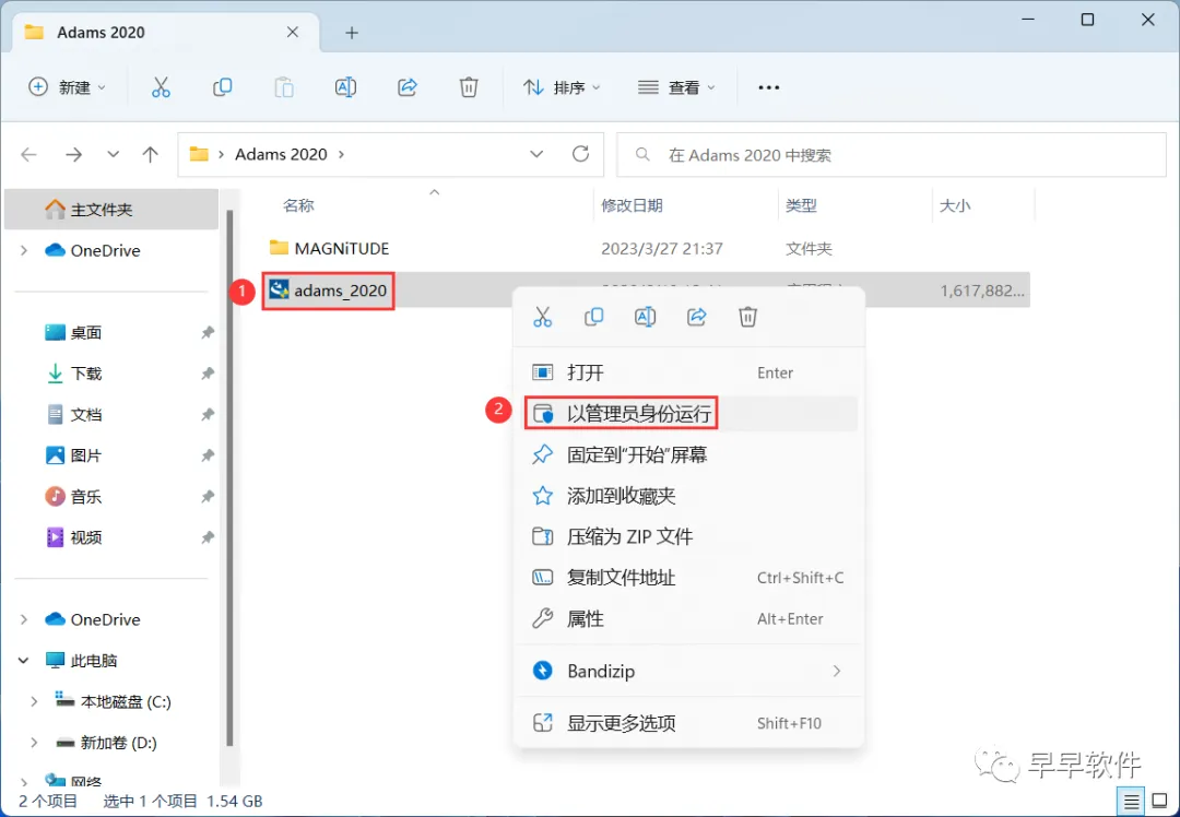 21、回到Adams 2020文件夹,找到【admas_2020】应用程序,右键选择【以管理员身份运行】它