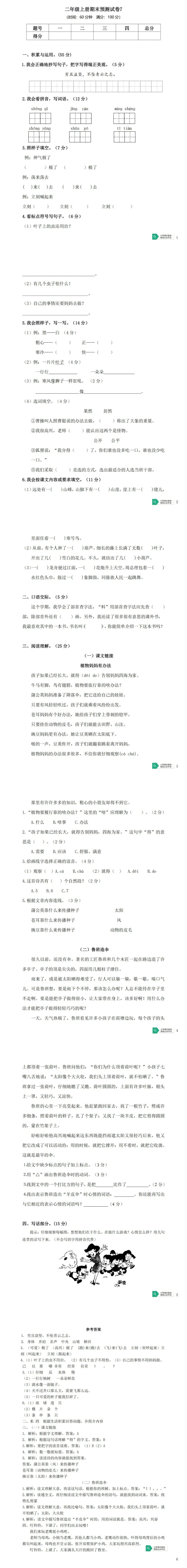 >二年级上册期末预测试卷7(免费下载)