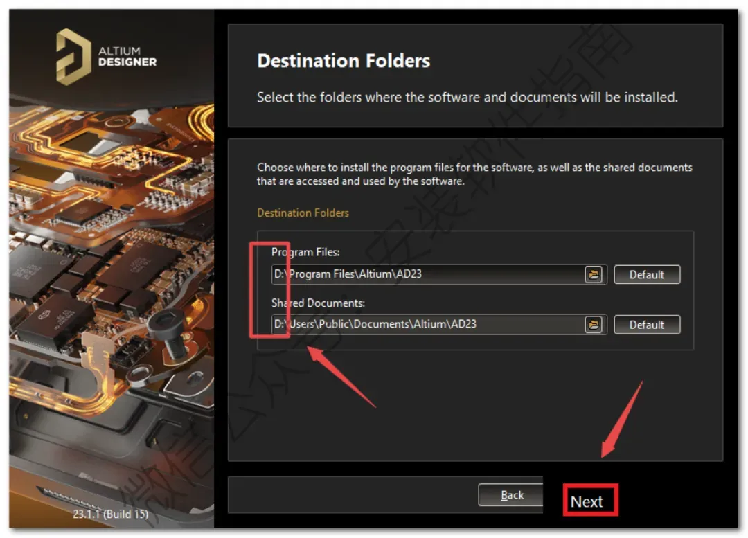 6、选择软件安装路径,建议和教程中的保持一致,本例安装到D盘(将路径地址中的首字符C改为D表示安装到D盘,或者可以在其它磁盘里创建一个新的文件夹,安装路径不要出现中文),点击“Next”