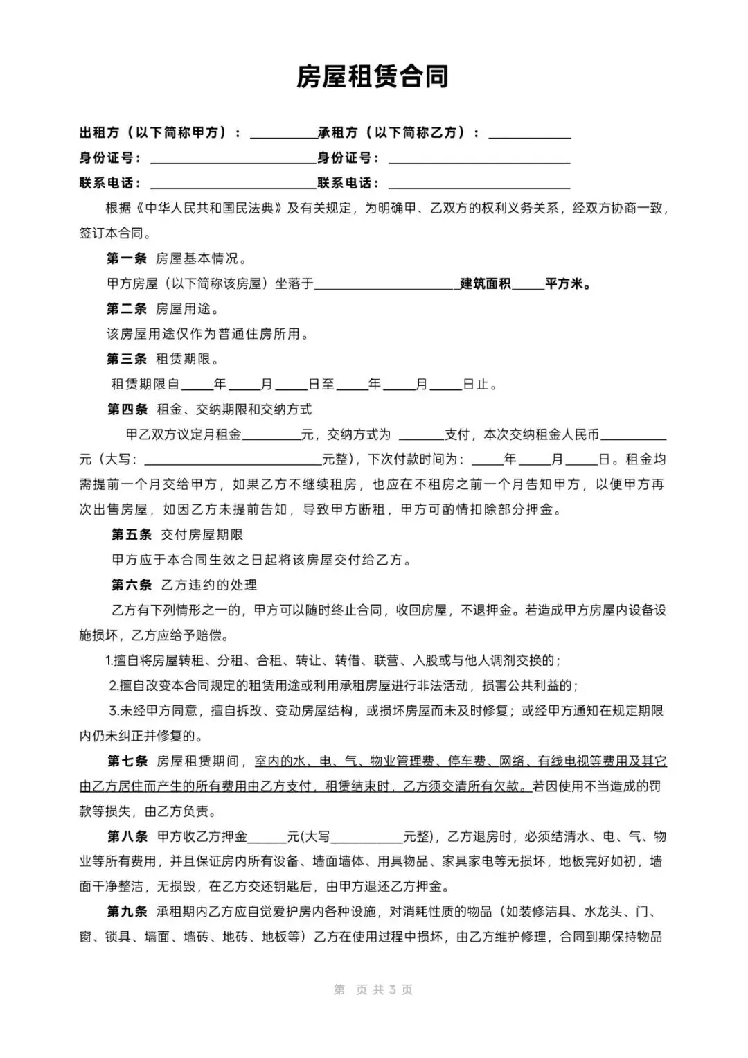 所有房屋租赁合同模板都是免费的,word可编辑,大家可以随意下载使用!