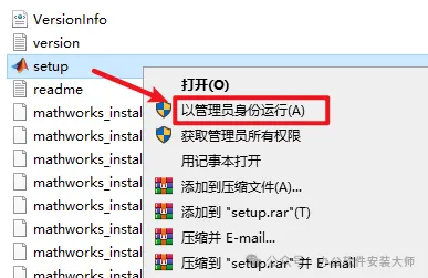 3.选中【setup】鼠标右键选择【以管理员身份运行】