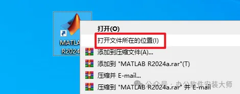 17.返回电脑桌面找到【MATLAB图标】选中,鼠标右键选择【打开文件所在的位置】点击打开