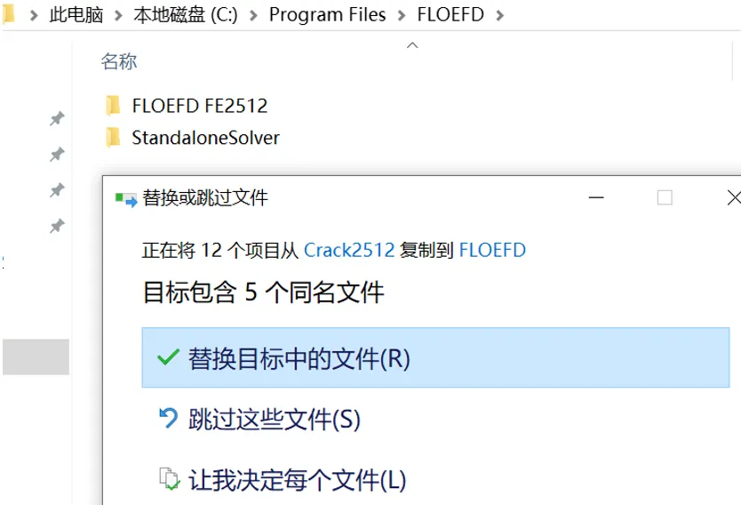 复制FLOEFD FE2512文件夹,粘贴到C:\Program Files\FLOEFD文件夹中(默认位置)。