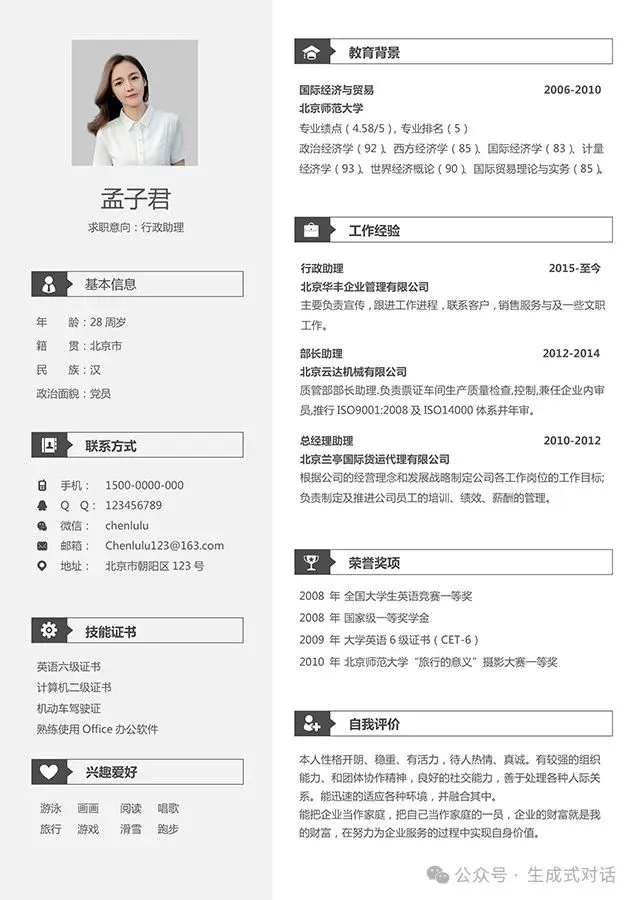 简历模板已经打包上传到了网盘中,关注公众号,复制以下网盘链接到浏览器下载即可,无需回复关键词。【网盘链接】https://pan.quark.cn/s/0a93de38e496