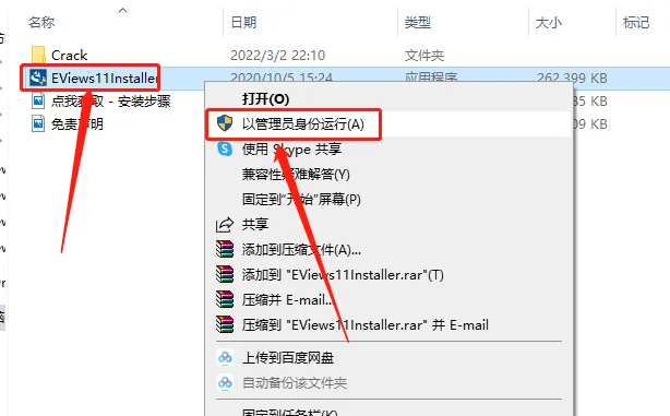 4.鼠标右击【EViews11Installer】安装程序,选择【以管理员身份运行】。