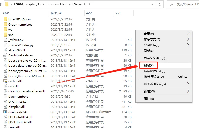 22.在打开的文件夹空白处,鼠标右击【粘贴】刚才复制的两个文件。