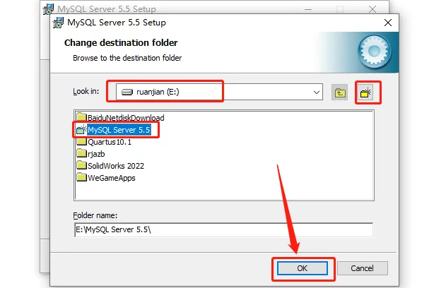 8.可以在E盘或者其它磁盘里创建一个新的文件夹,选中后点击【OK】。