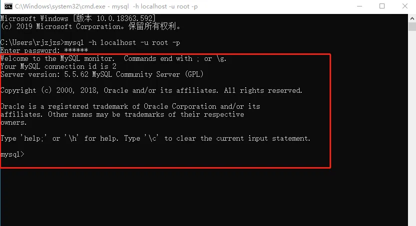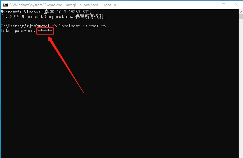 28.输入mysql –h localhost –u root -p,然后按回车键。