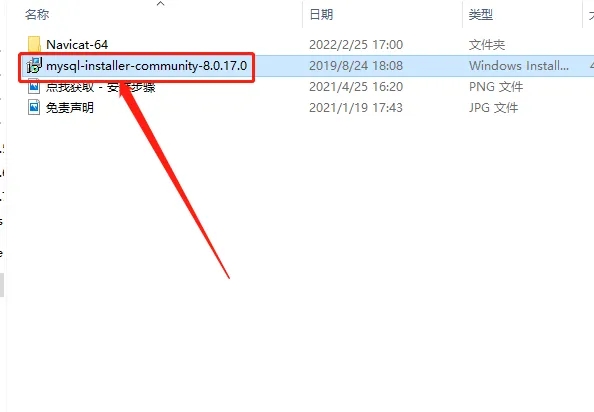 3.鼠标右击【mysql-installer-community-8.0.17.0】安装程序,选择【以管理员身份运行】。