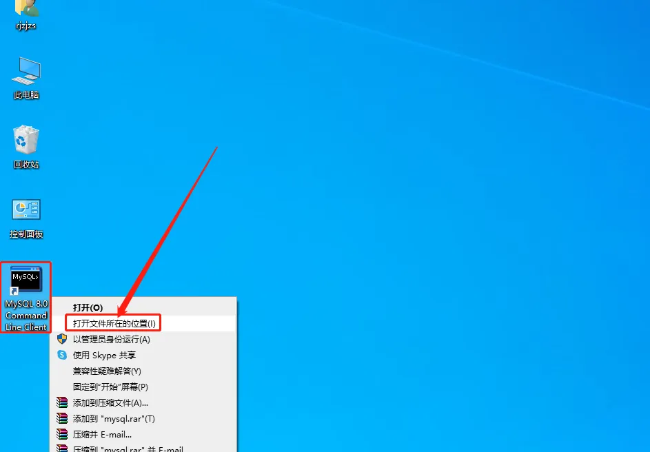 26.鼠标右击【MySQL8.0 Command Line Client】,选择【打开文件所在的位置】。