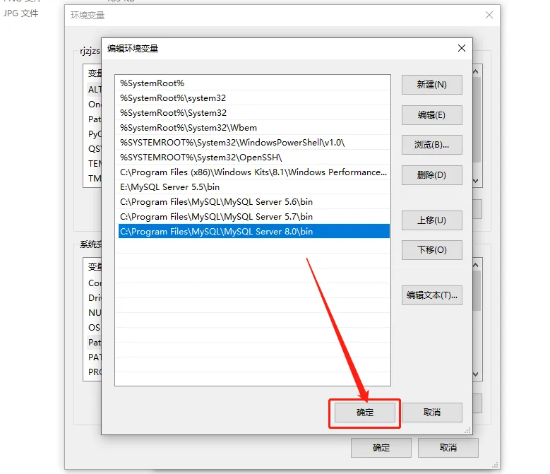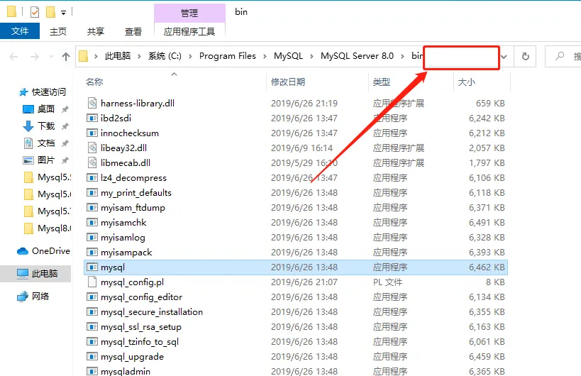 34.粘贴刚才复制的路径C:\Program Flies\MySQL\MySQL Server 8.0\bin。
