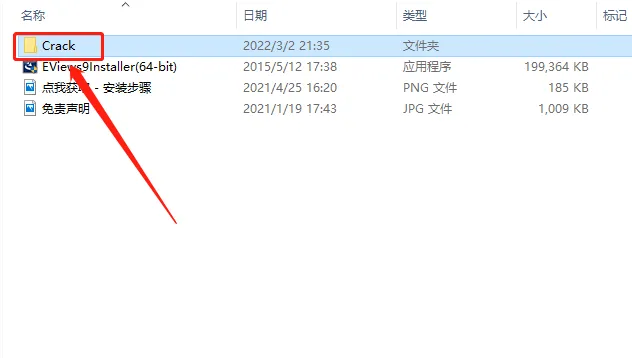 19.返回到解压的【EViews 9.0-64bit】文件夹中,然后打开【Crack】文件夹。