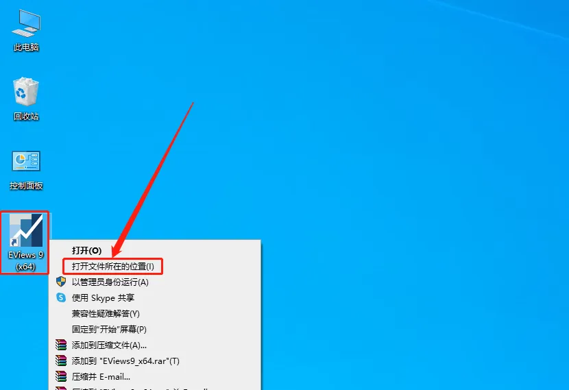 21.在桌面上找到EViews软件图标,鼠标右击选择【打开文件所在的位置】。