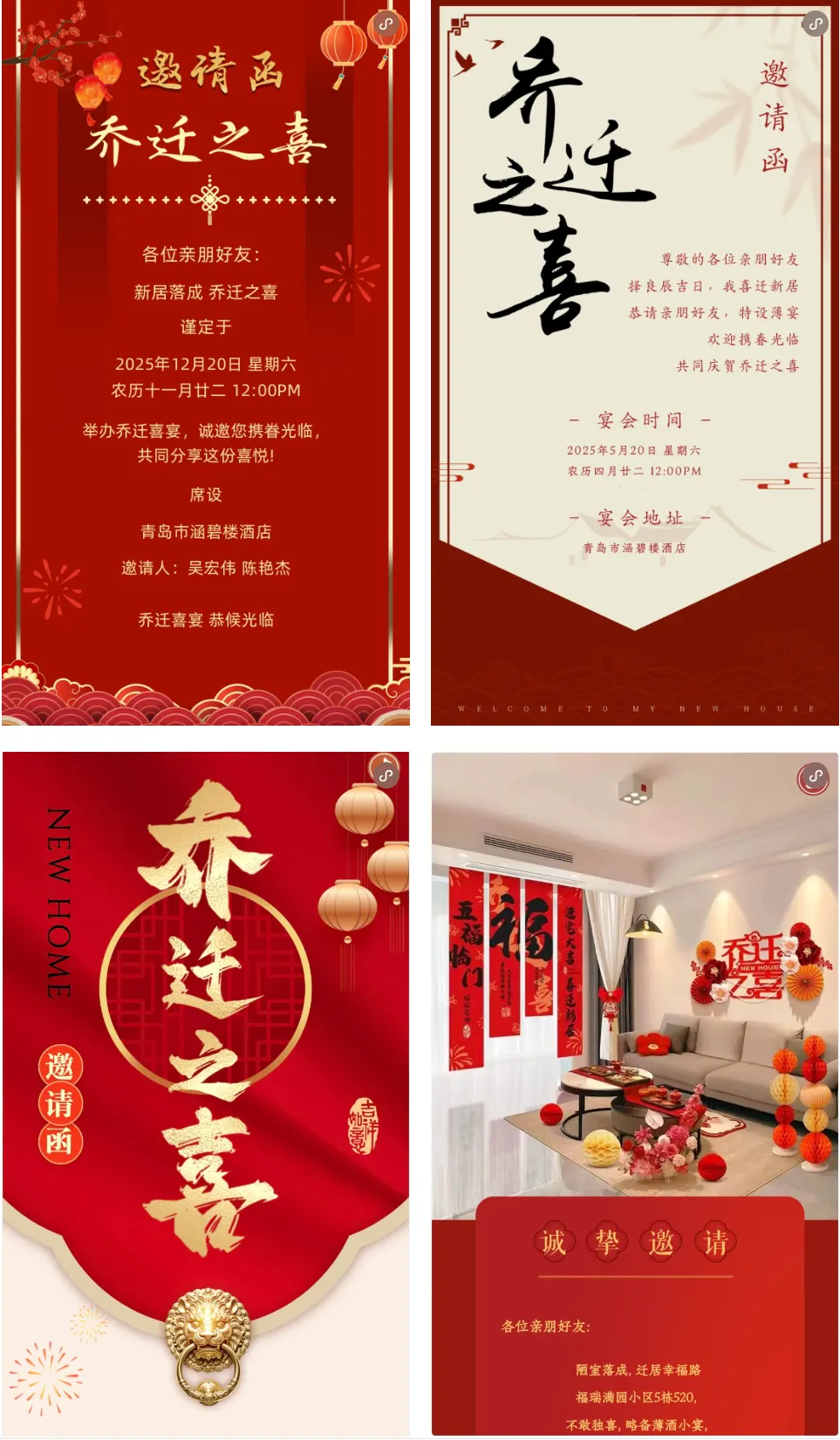 (免费下载)16款乔迁之喜邀请函免费电子模板最新可编辑打印
