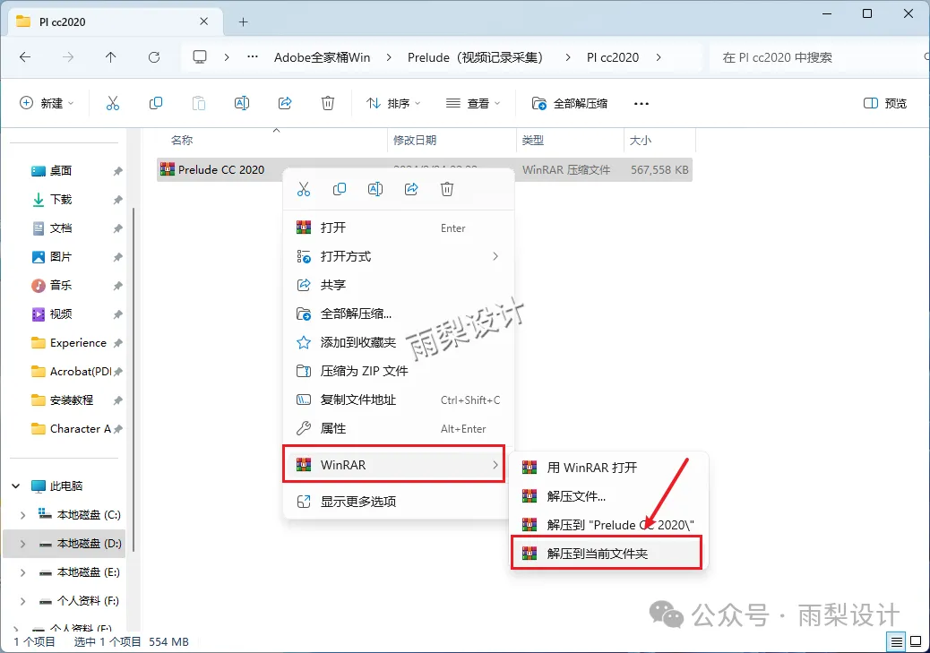 1.右键【下载的安装包】选择【解压当前文件夹】