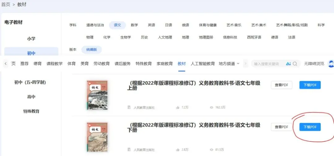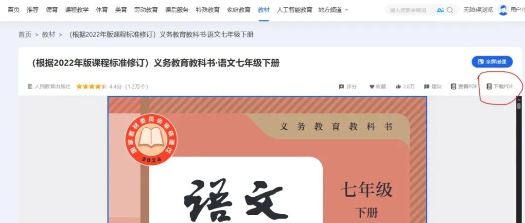 也可以点击看文本进去看看是不是你想要的课本到详情页也可以下载,打开详情页,出现下载pdf ,点击就可以下载了,如果没有出现就关闭重新打开或刷新多试几次就有了