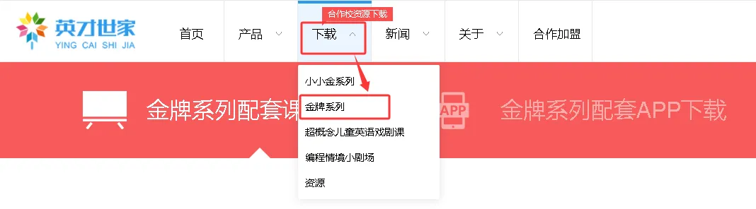 进入官网后,将鼠标悬停在顶部导航栏的“下载”选项上,然后点击“金牌系列”。