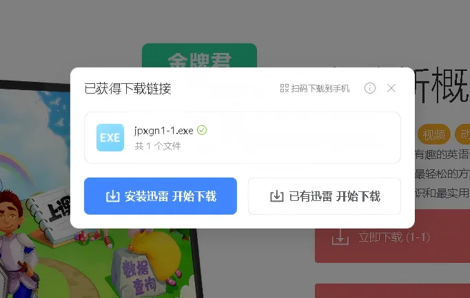 若已安装迅雷,请选择“已有迅雷开始下载”。