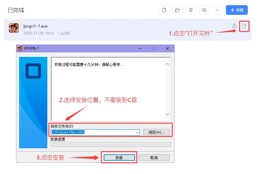 金牌新概念一册的课件叫做“金牌君”,当金牌君课件下载完成后,可选定合适的安装路径(尽量不要装到C盘),随后点击“安装”按钮,待安装流程全部完成,课件将自动启动。
