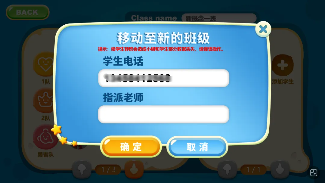 2.在指派老师一栏输入接收老师的电话,确认后该学生就会转入该老师班级。