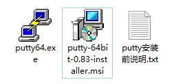 两个都可以直接使用,如若需要其它版本,第三个说明文本文件中留有putty官网地址,可按需自行下载;