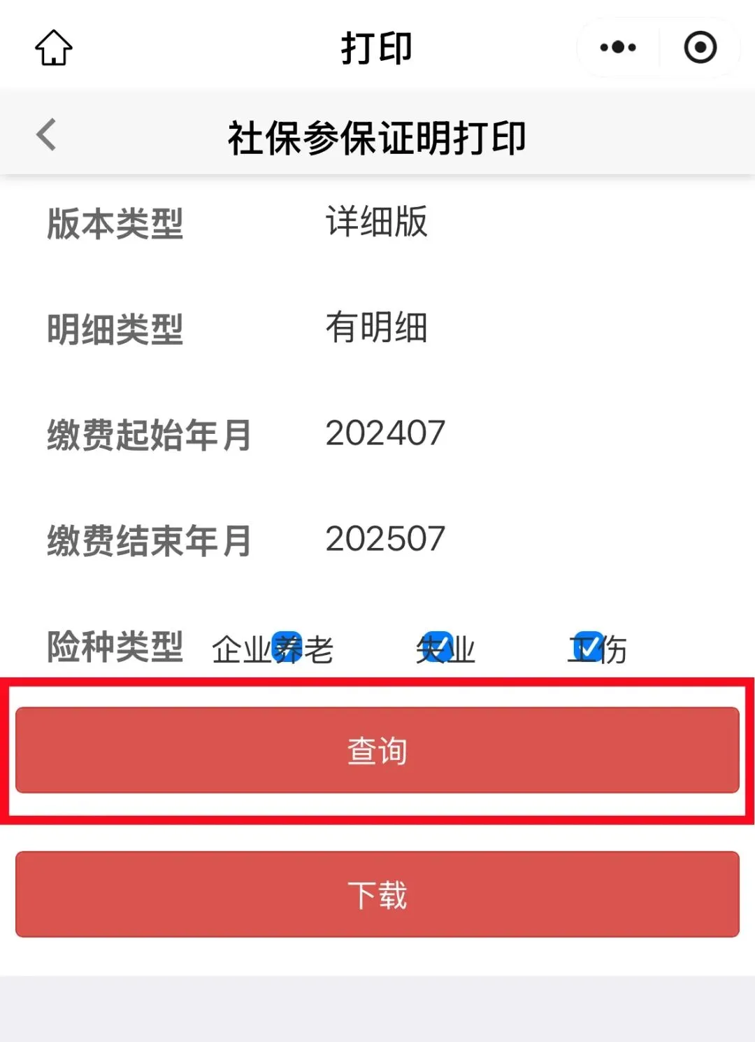 四、 选择:个人参保缴费证明打印,查询近一年的参保明细,长按图片(多张图片请勿遗漏)即可保存原图至相册