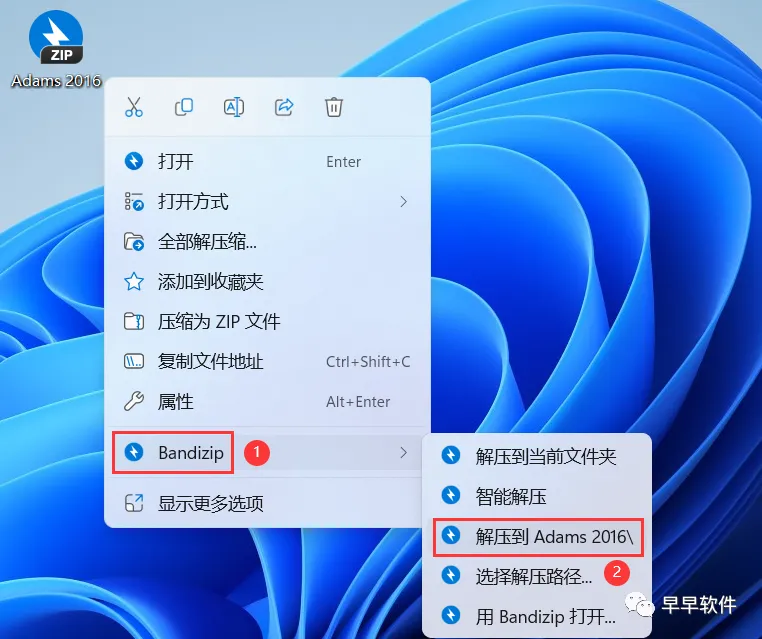 1、下载Adams 2016软件安装包到电脑上,右键选择【解压到Adams 2016\】