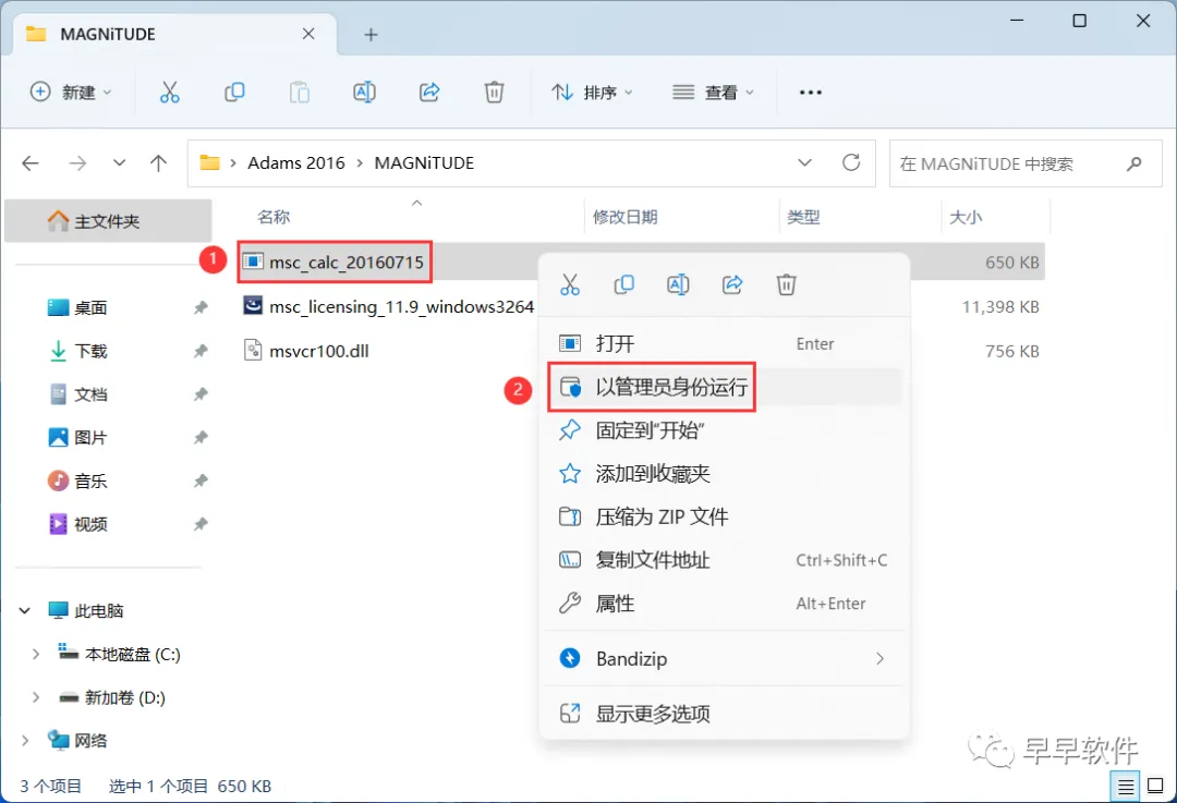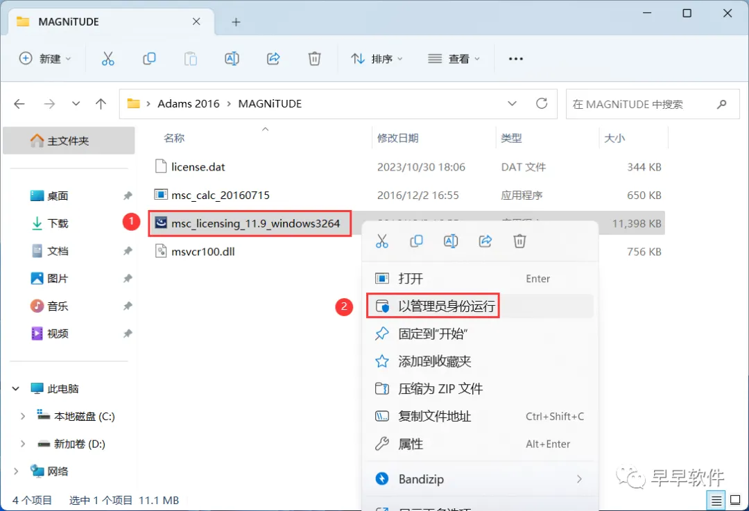 7、找到【msc_license_11.9…】应用程序,右键选择【以管理员身份运行】它