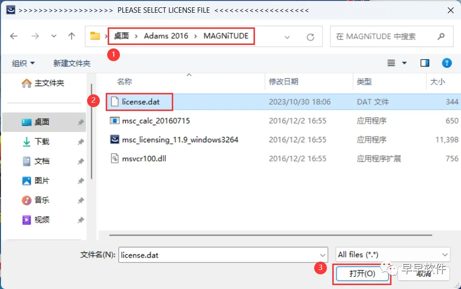 13、找到并选中安装包MAGNiTUDE文件夹下的【license.dat】文件,再点击【打开】