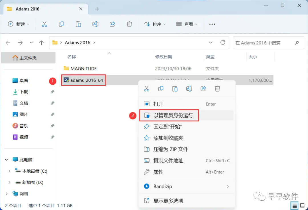 18、回到Adams 2016文件夹,找到【admas_2016】应用程序,右键选择【以管理员身份运行】它