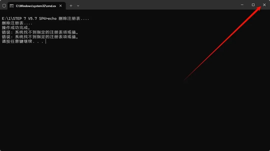 3.提示“继续”,点击右上角的“X“关闭