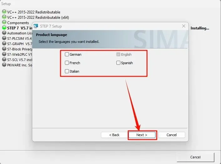 15.根据需要选择语言,教程这里只选English,点击“Next”
