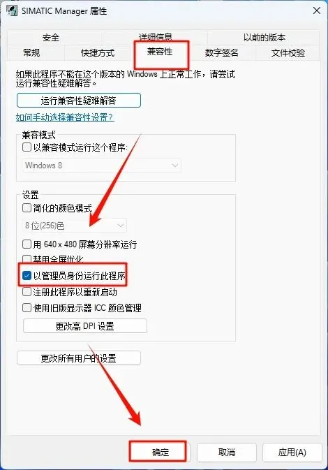 25.点击“兼容性”,勾选“以管理员身份运行此程序”,点击“确定”