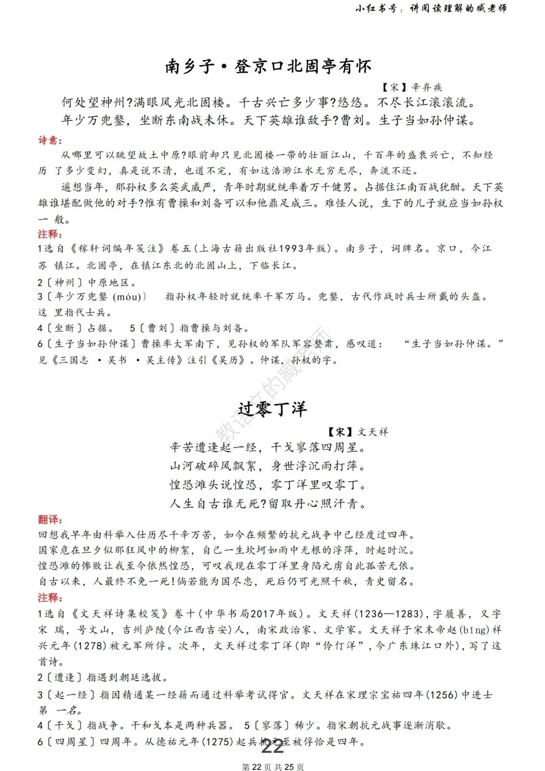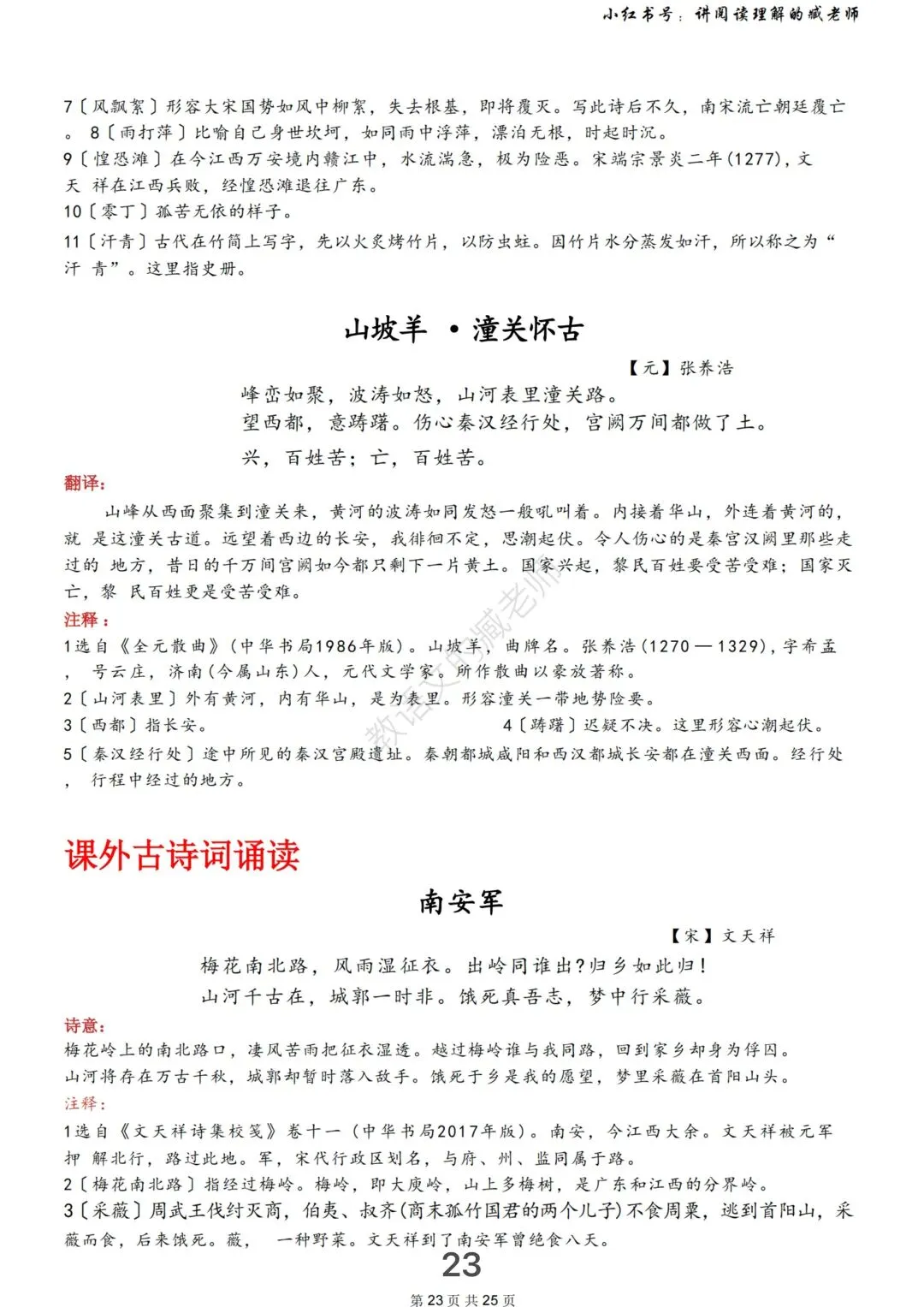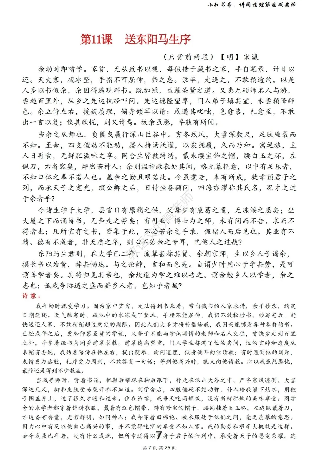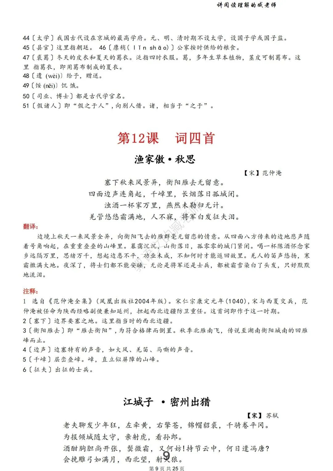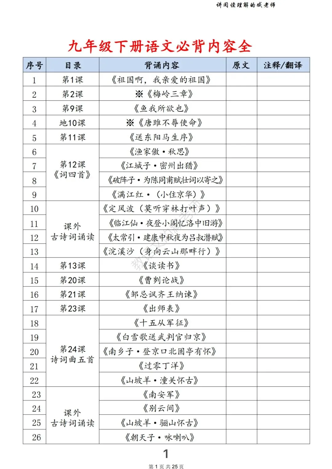 >九年级下册语文必背古诗文,免费电子版可下载打印(原文+注释+翻译)