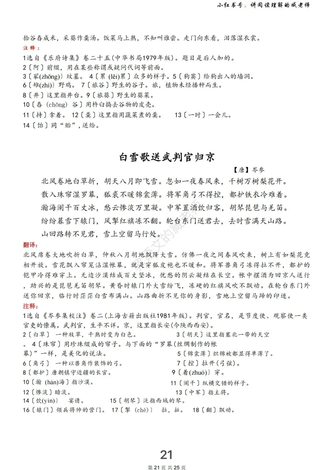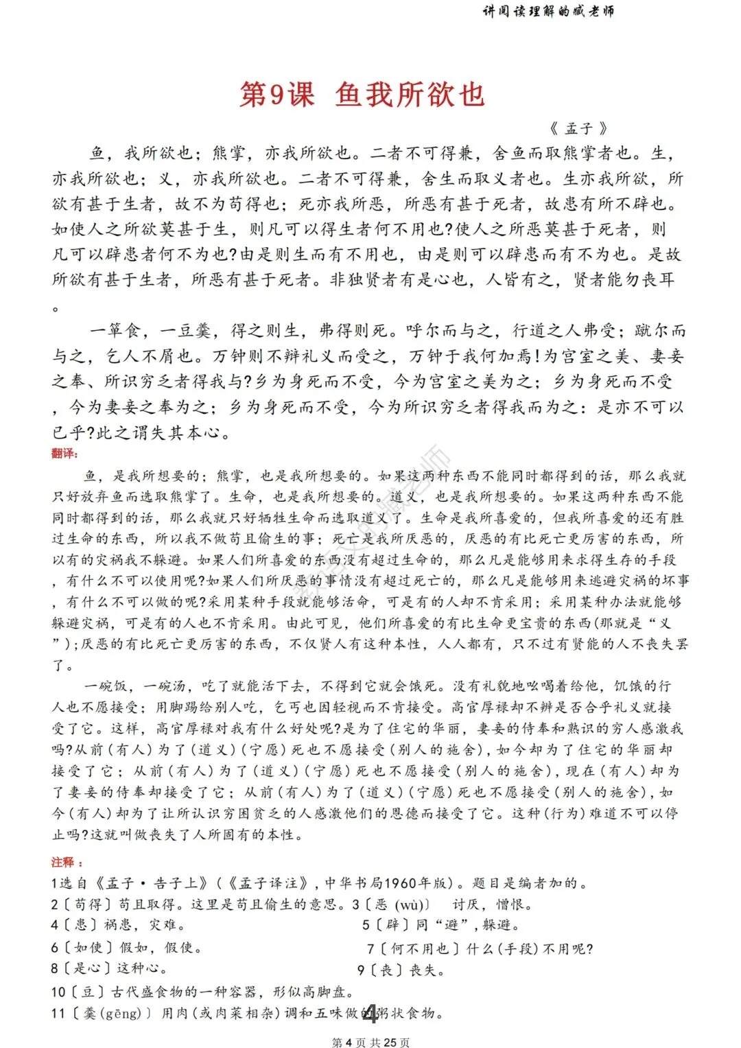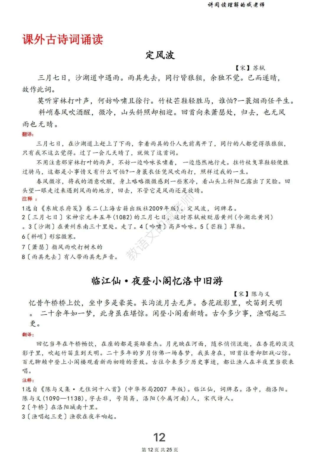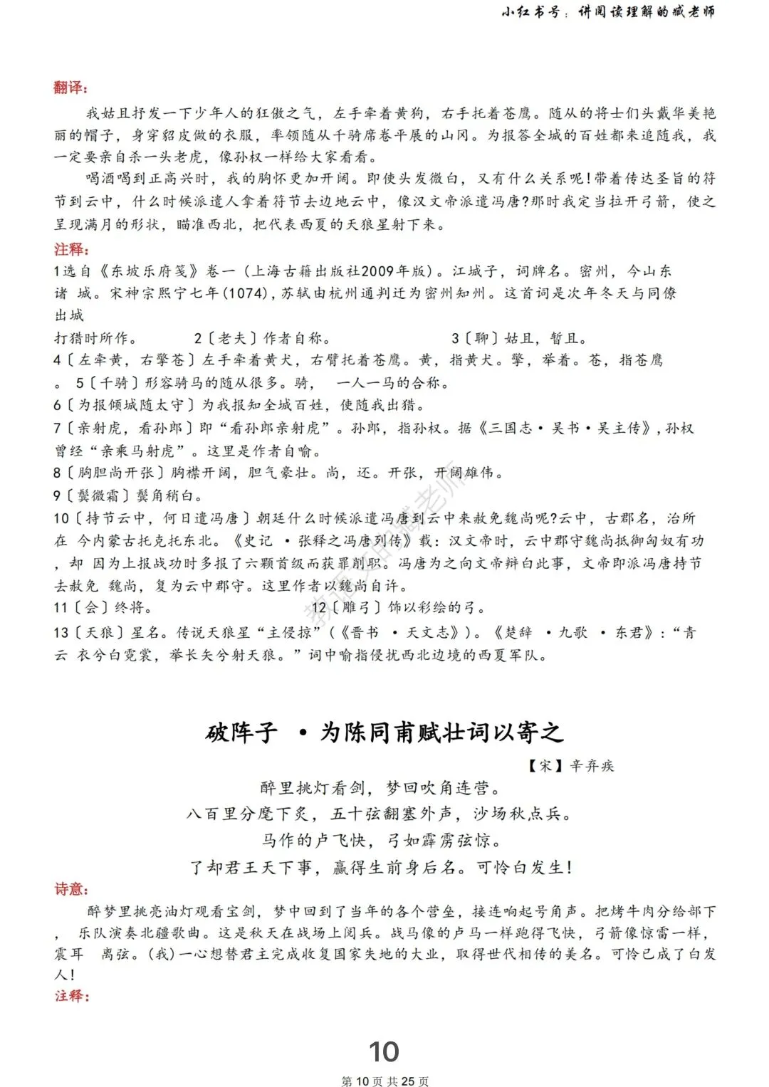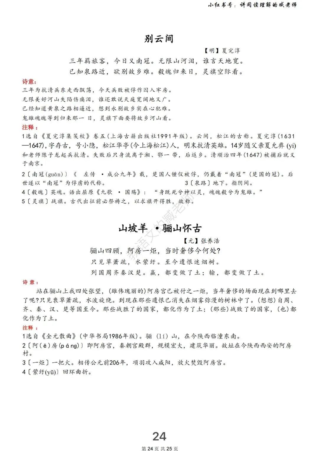 >九年级下册语文必背古诗文,免费电子版可下载打印(原文+注释+翻译)