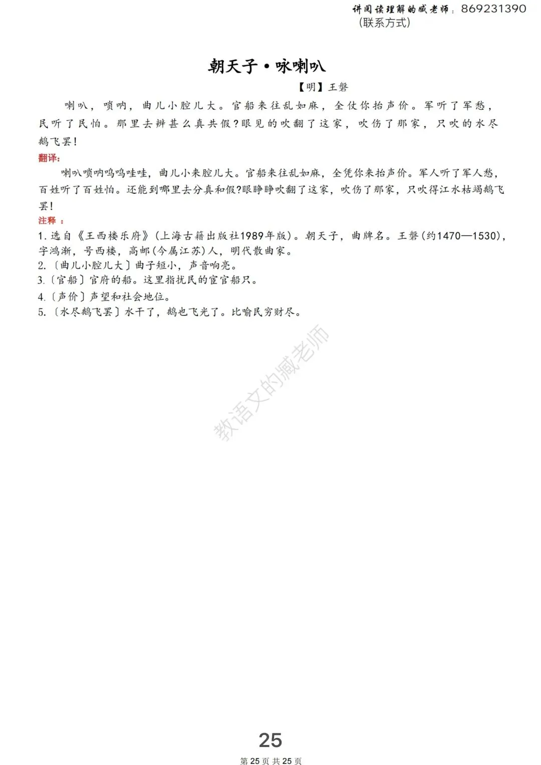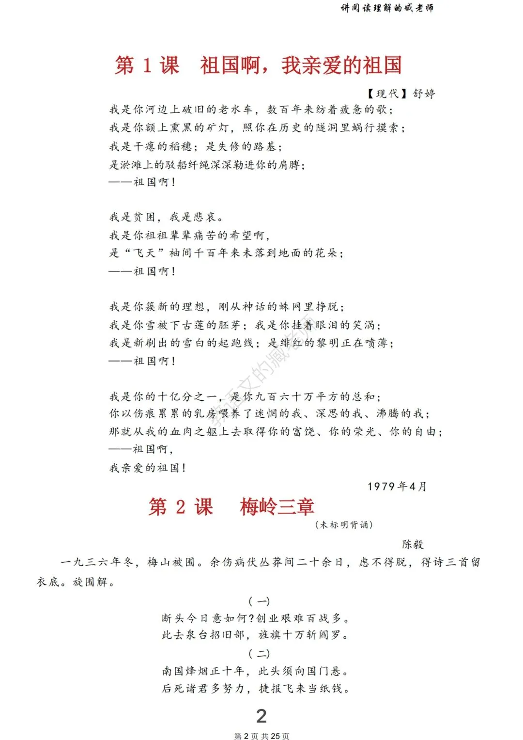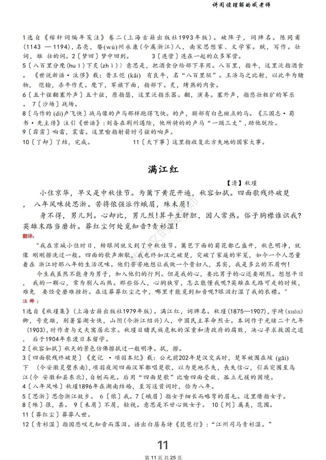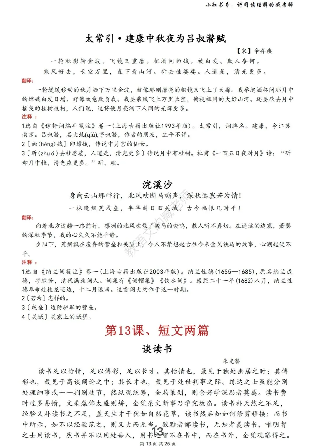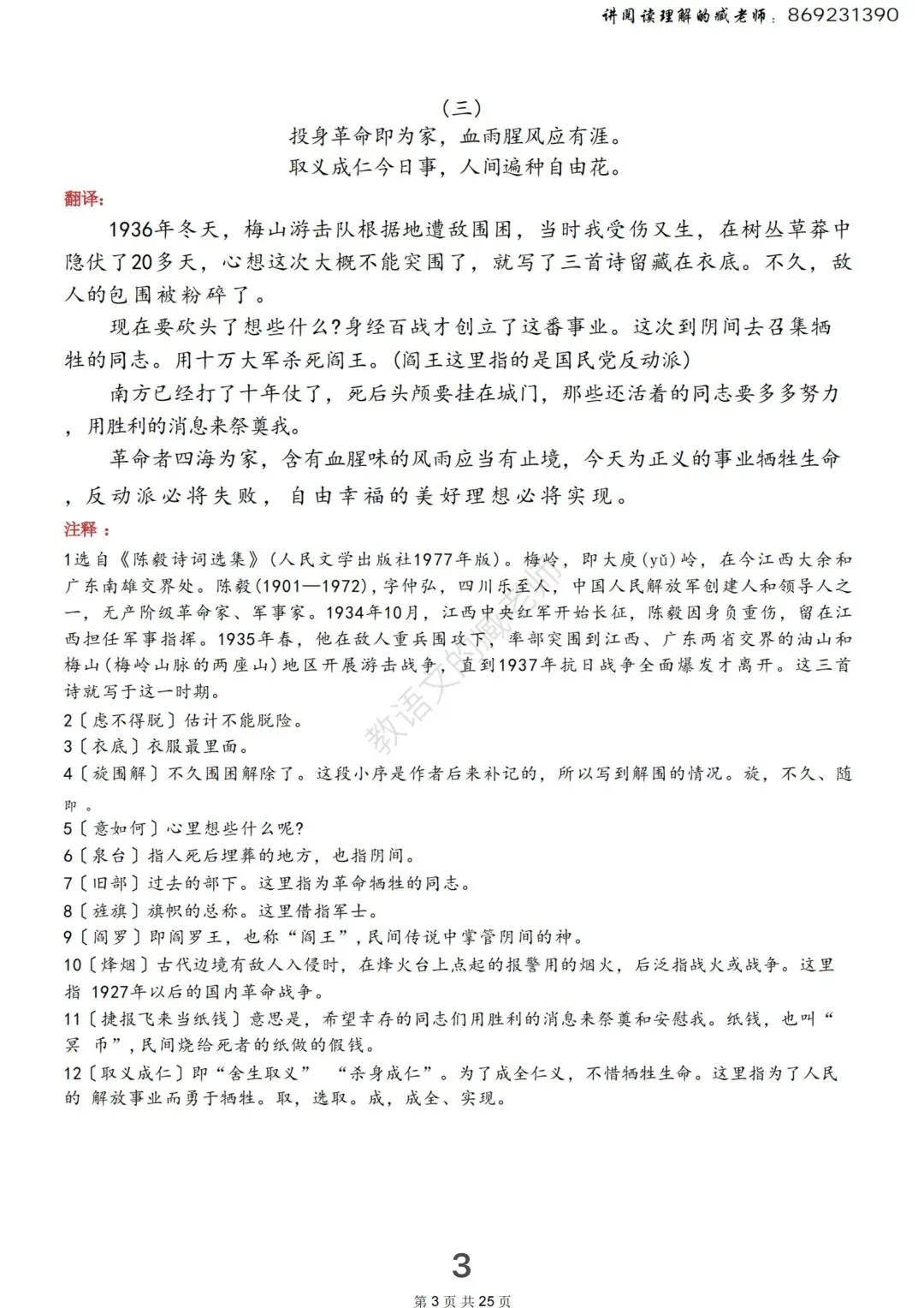 >九年级下册语文必背古诗文,免费电子版可下载打印(原文+注释+翻译)