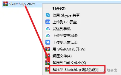 1.下载好压缩包,鼠标右键解压到【SketchUp 2025】