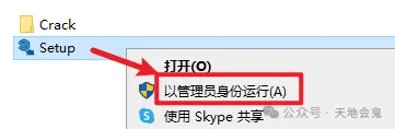 2.打开解压好的文件夹,选中【Setup】鼠标右键选择【以管理员身份运行】