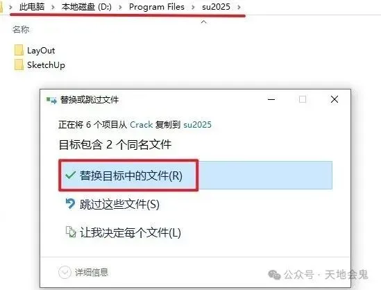 3.将刚刚复制的文件粘贴到刚才软件设置的安装路径下(在第3步自己设置的安装路径),点击【替换目标中的文件】
