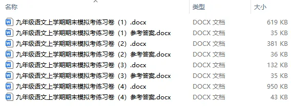 今天“一只桃李”为大家分享的是“九年级语文上学期期末模拟考练习卷(共4套,含答案)”,文章末尾附领取链接,无套路,一键保存,可直接打印,欢迎下载使用。