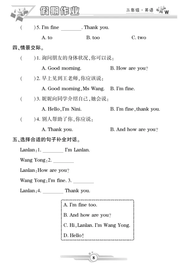 「三年级英语寒假作业」