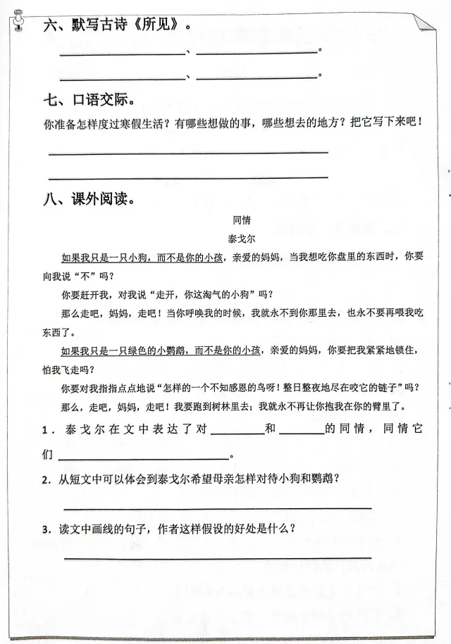 「三年级语文寒假作业」