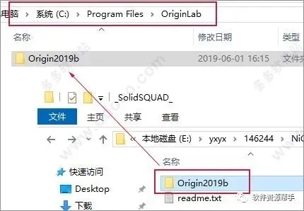 12、将破解文件夹“_SolidSQUAD_”解压出来的文件夹Origin2019b复制到软件安装目录下替换;
