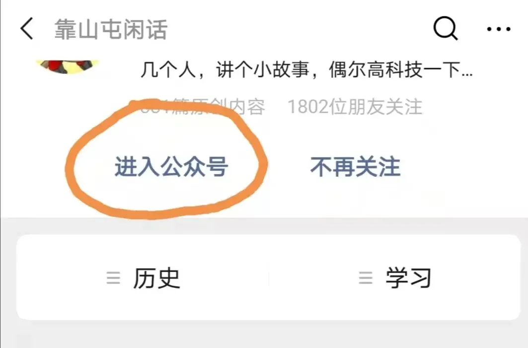第一步,进入公众号;如果是刚关注的,这步省略。
