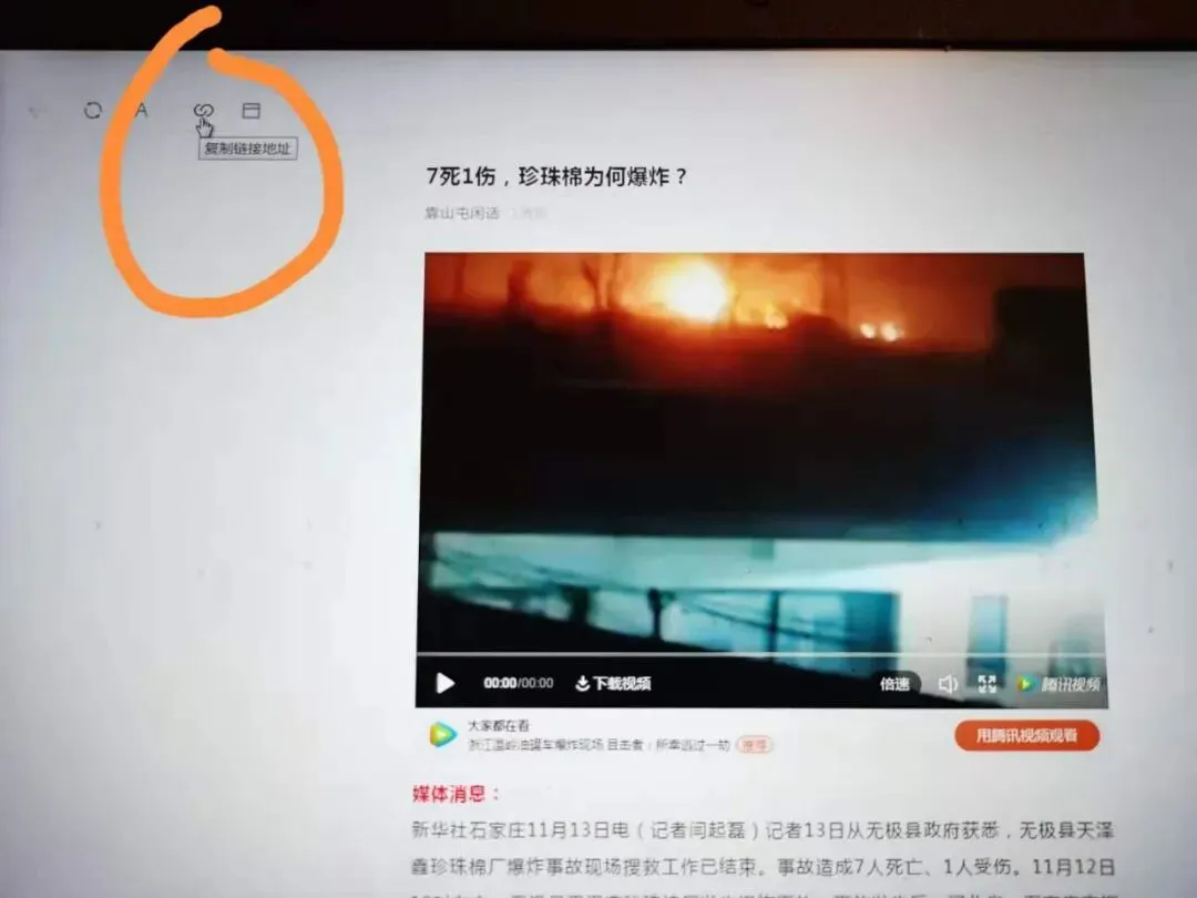 2、将含有视频的微信文章打开,复制其地址,按下图示意操作: