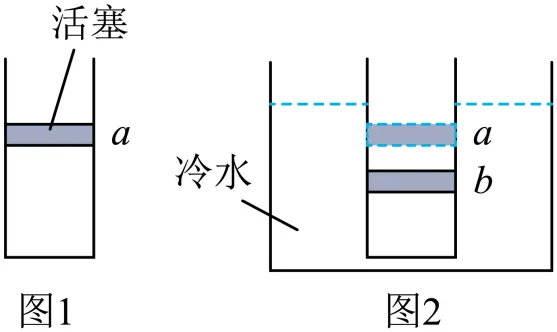 4.如图1所示,用活塞将一定质量的理想气体密封在导热气缸内,活塞稳定在a处。将气缸置于恒温冷水中,如图2所示,活塞自发从a处缓慢下降并停在b处,然后保持气缸不动,用外力将活塞缓慢提升回a处。不计活塞与气缸壁之间的摩擦。则()