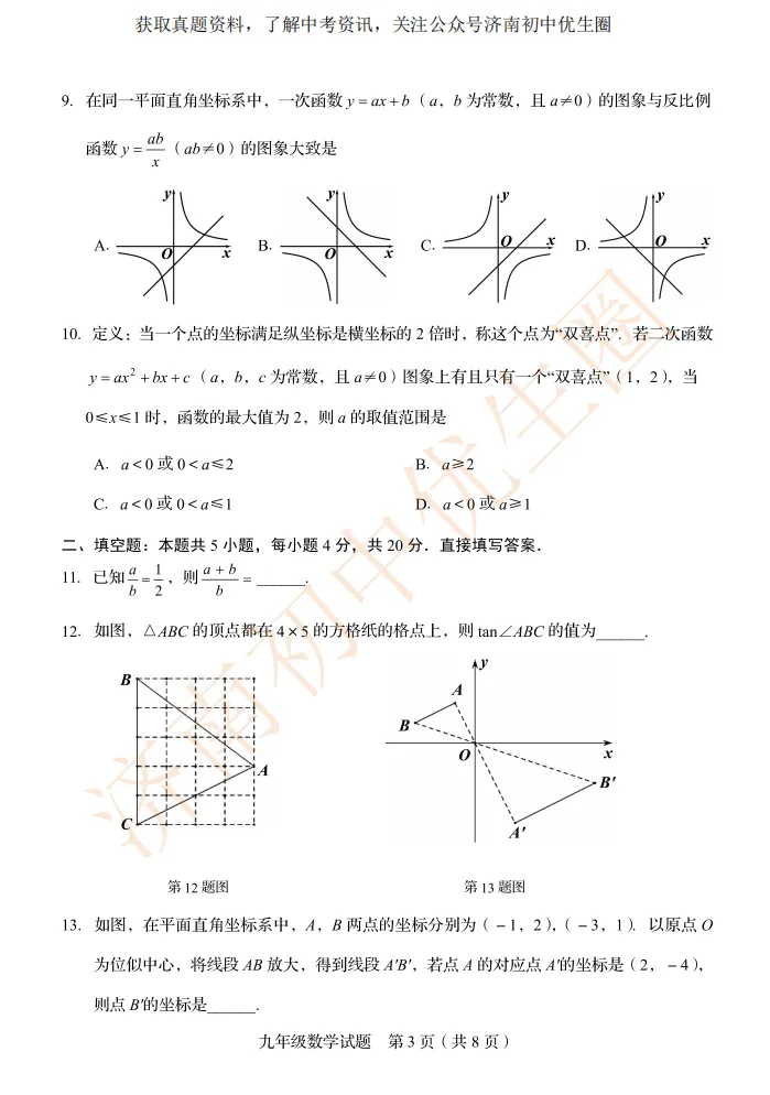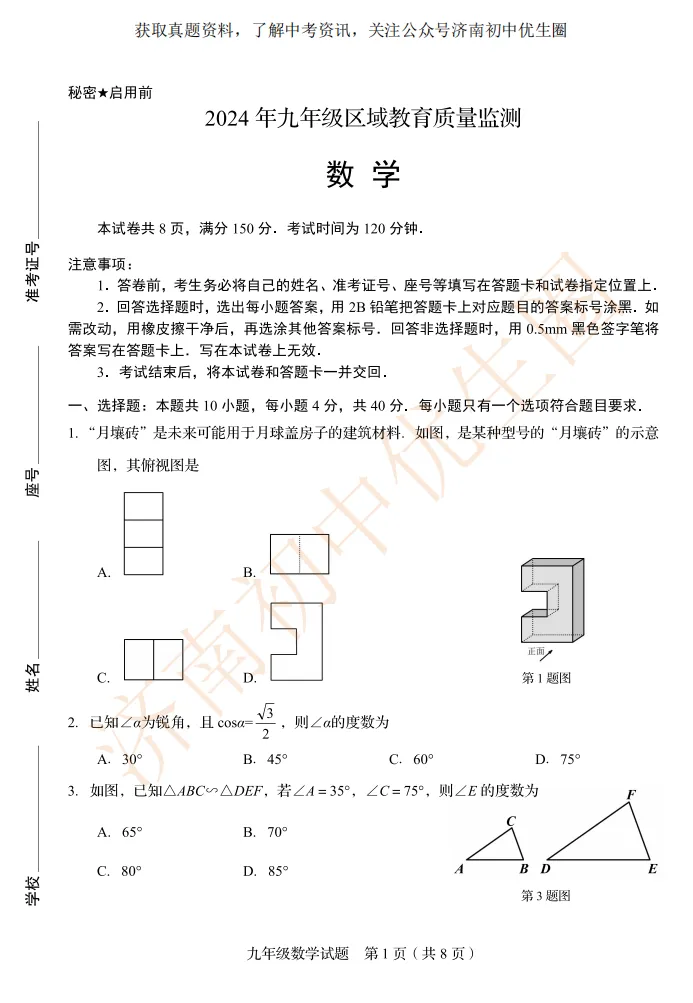 一模时间定了!24年济南初三一模真题+答案解析免费领取!
