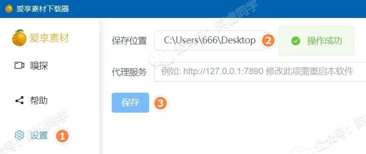 具体软件下载安装很简单,阿虚就不说了。就是安装好之后使用前需要你先点击设置,提前设置好保存位置,否则后面没法下载成功(注意一定要点击保存)