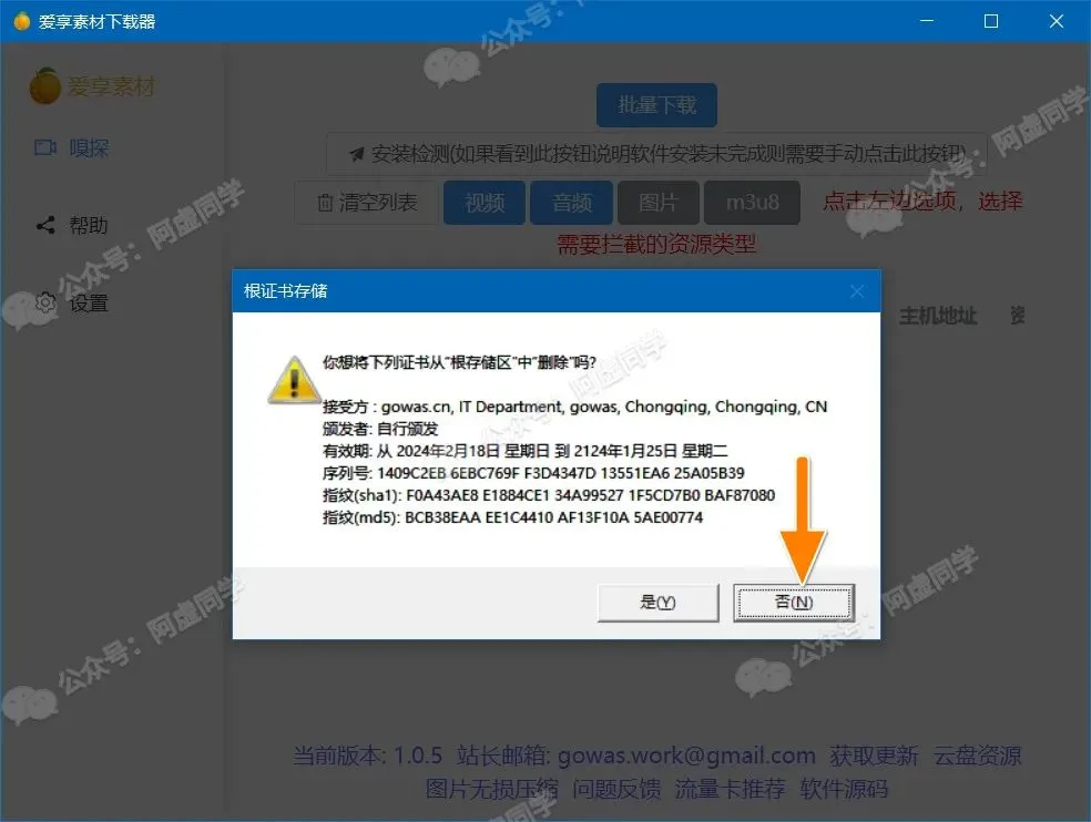 后续使用过程中,你可能会遇到以下弹窗,注意点击否,否则可能会导致你获取不到视频